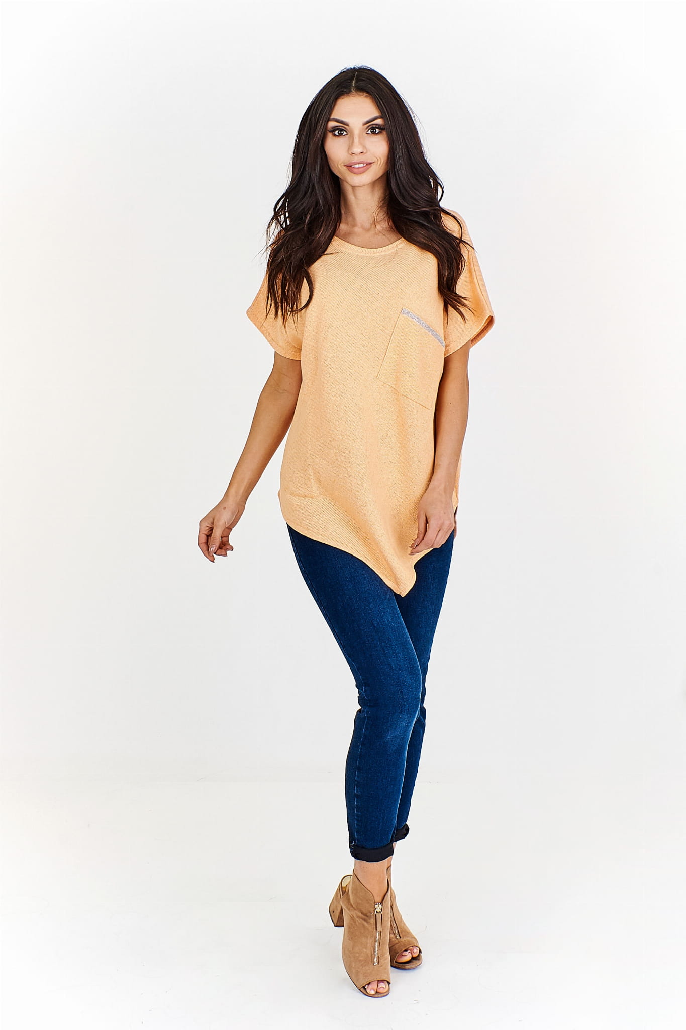 Asymetryczny sweter z krótkim rękawem