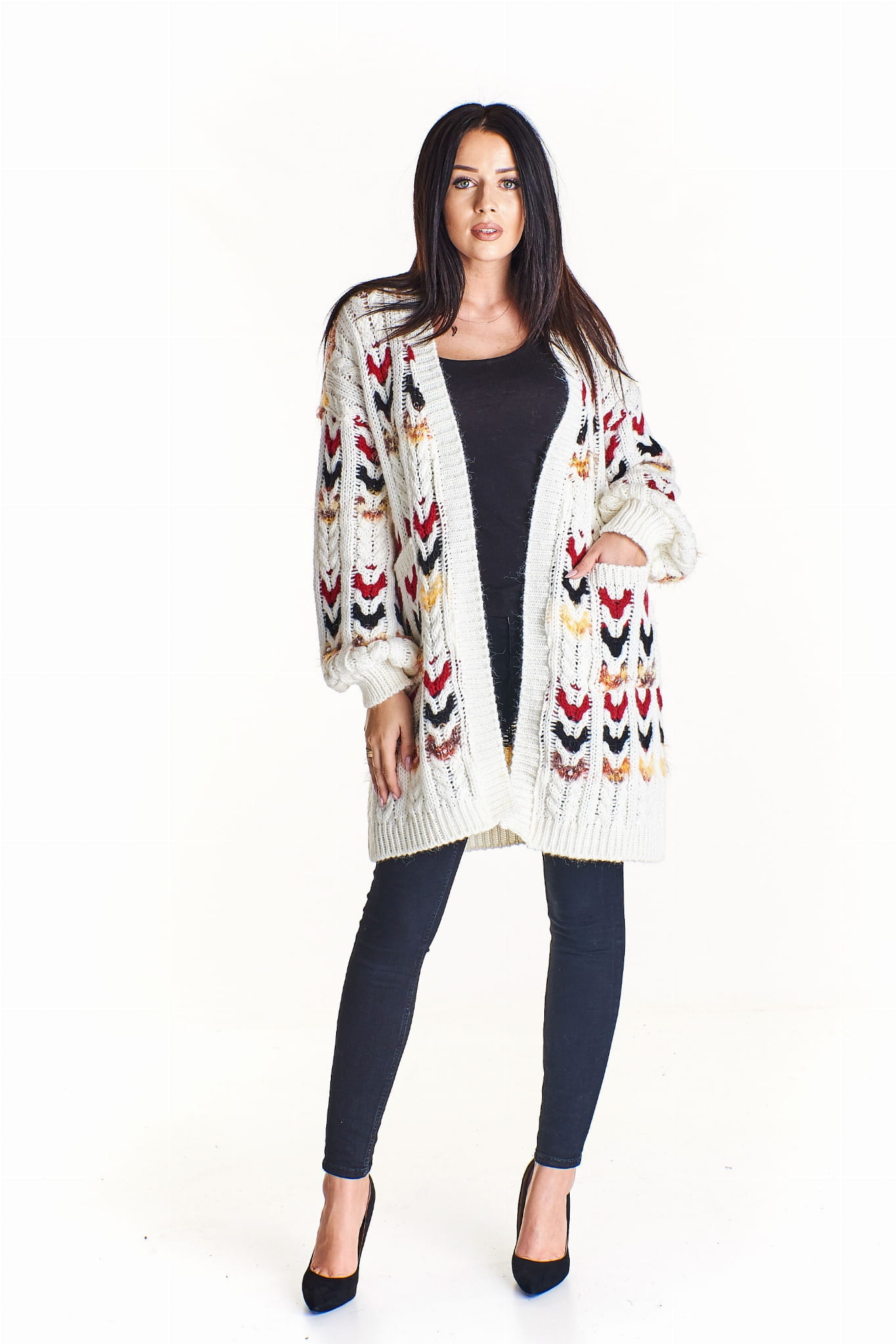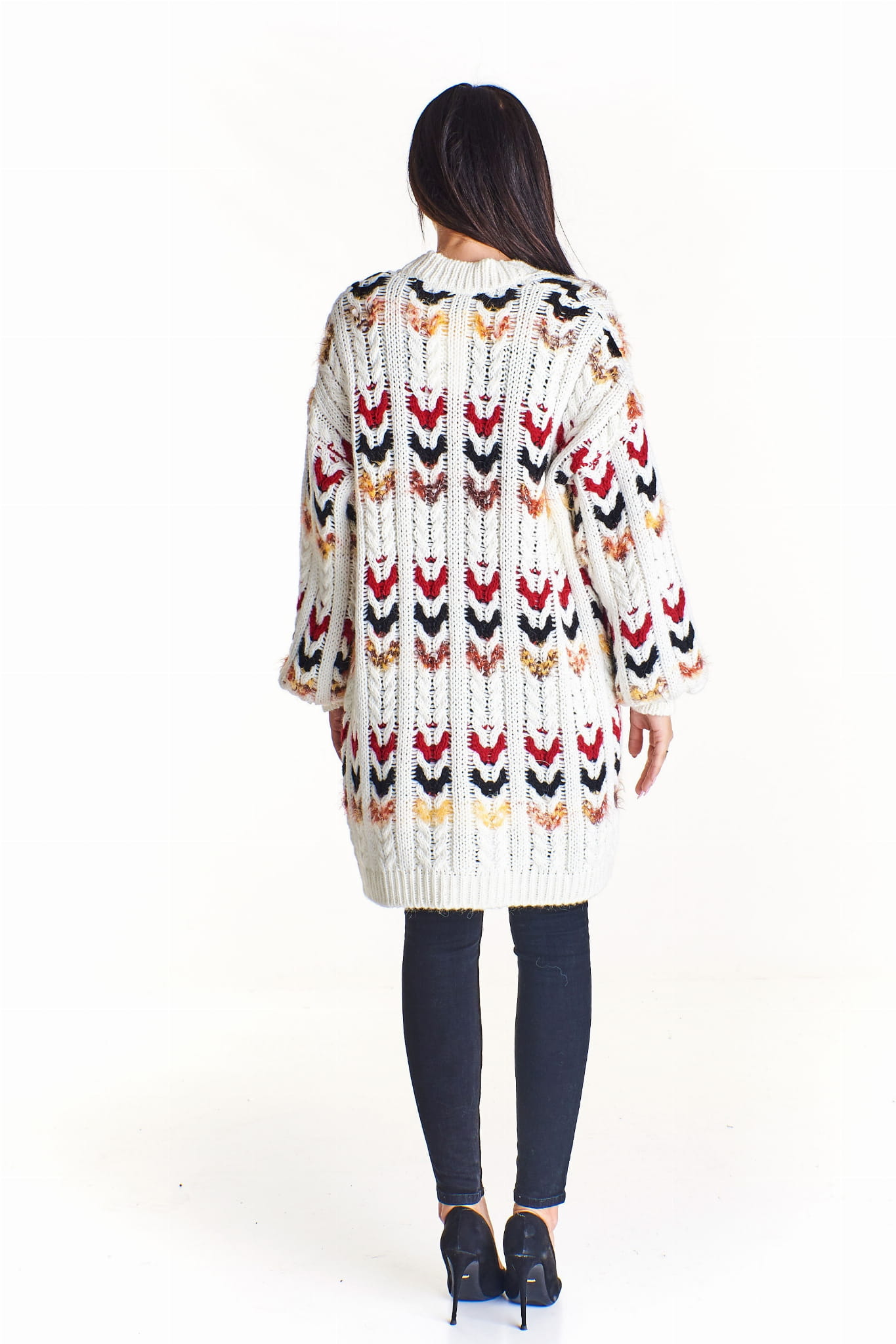 Długi kardigan o splocie typu choinka (U)