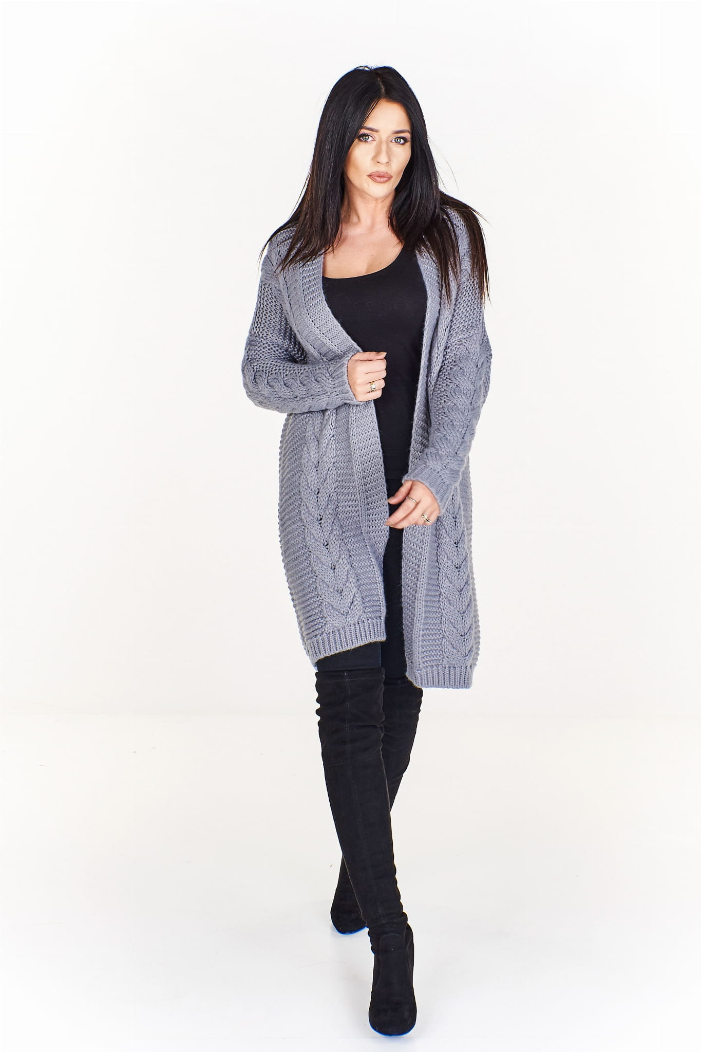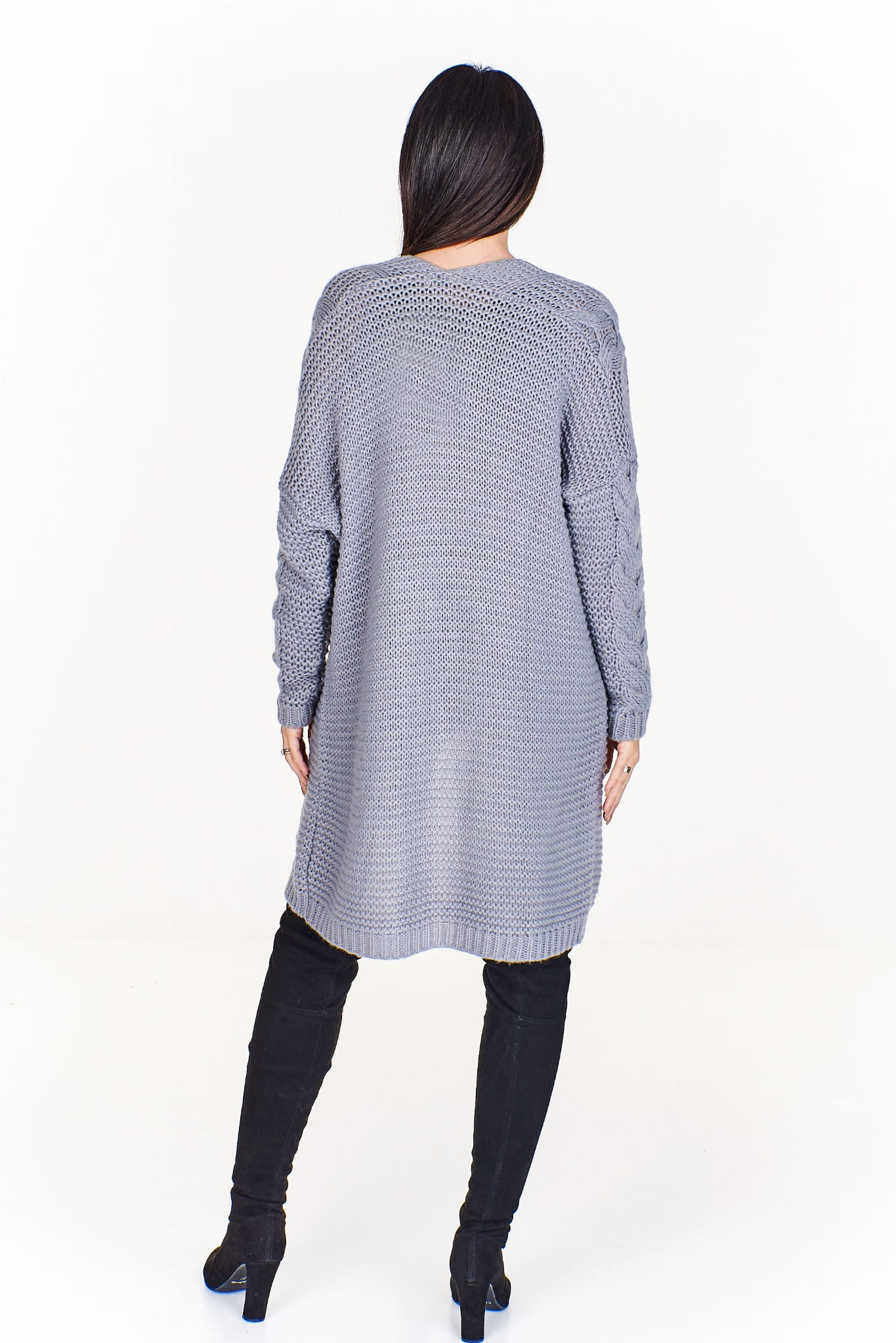 Długi sweter o splocie a'la warkocz