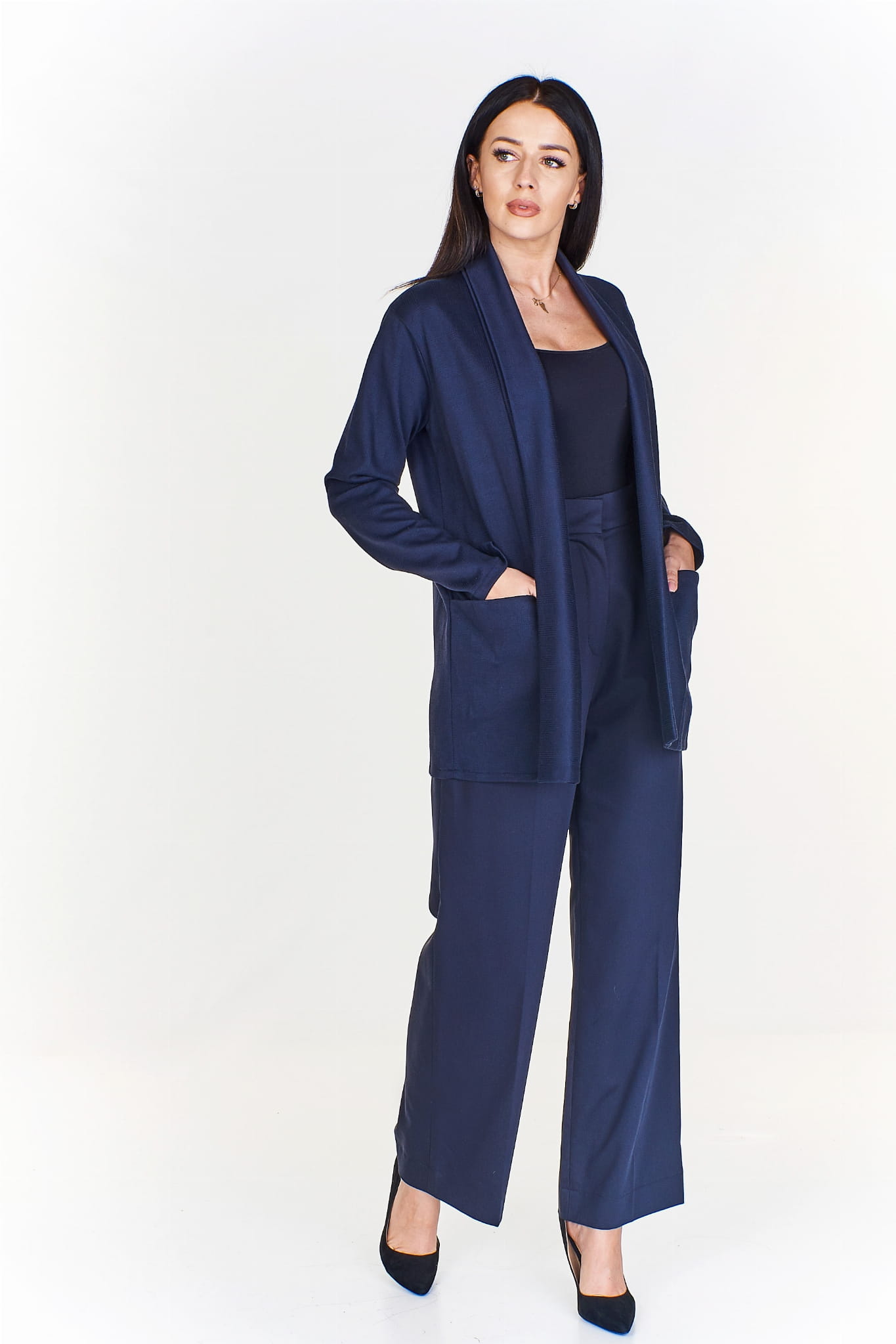 Długi sweter oversize z kieszeniami