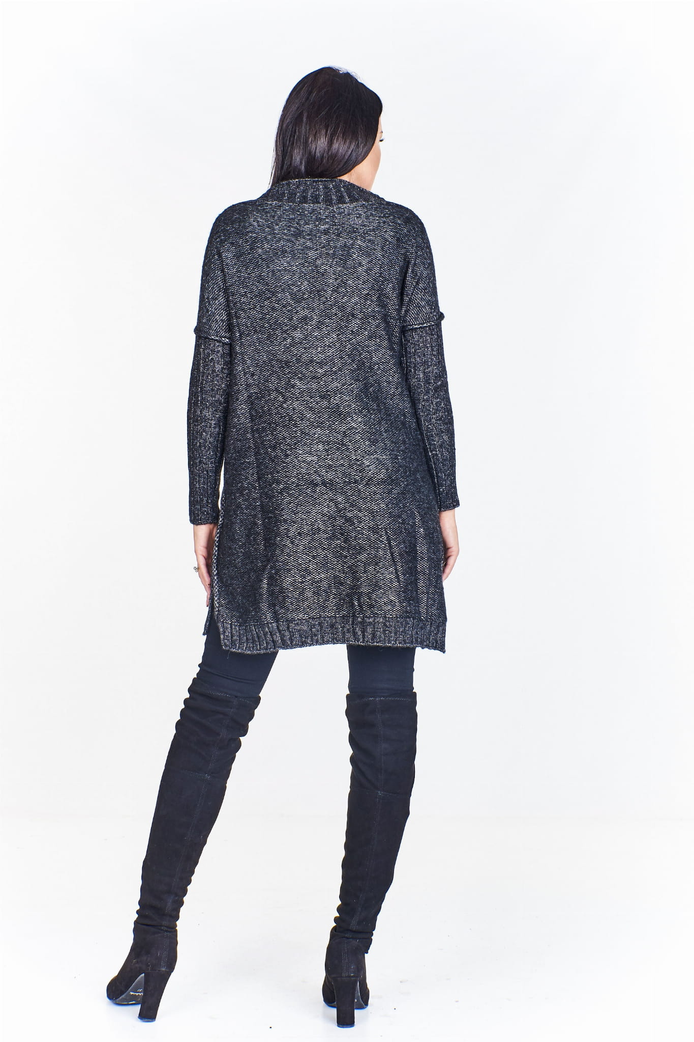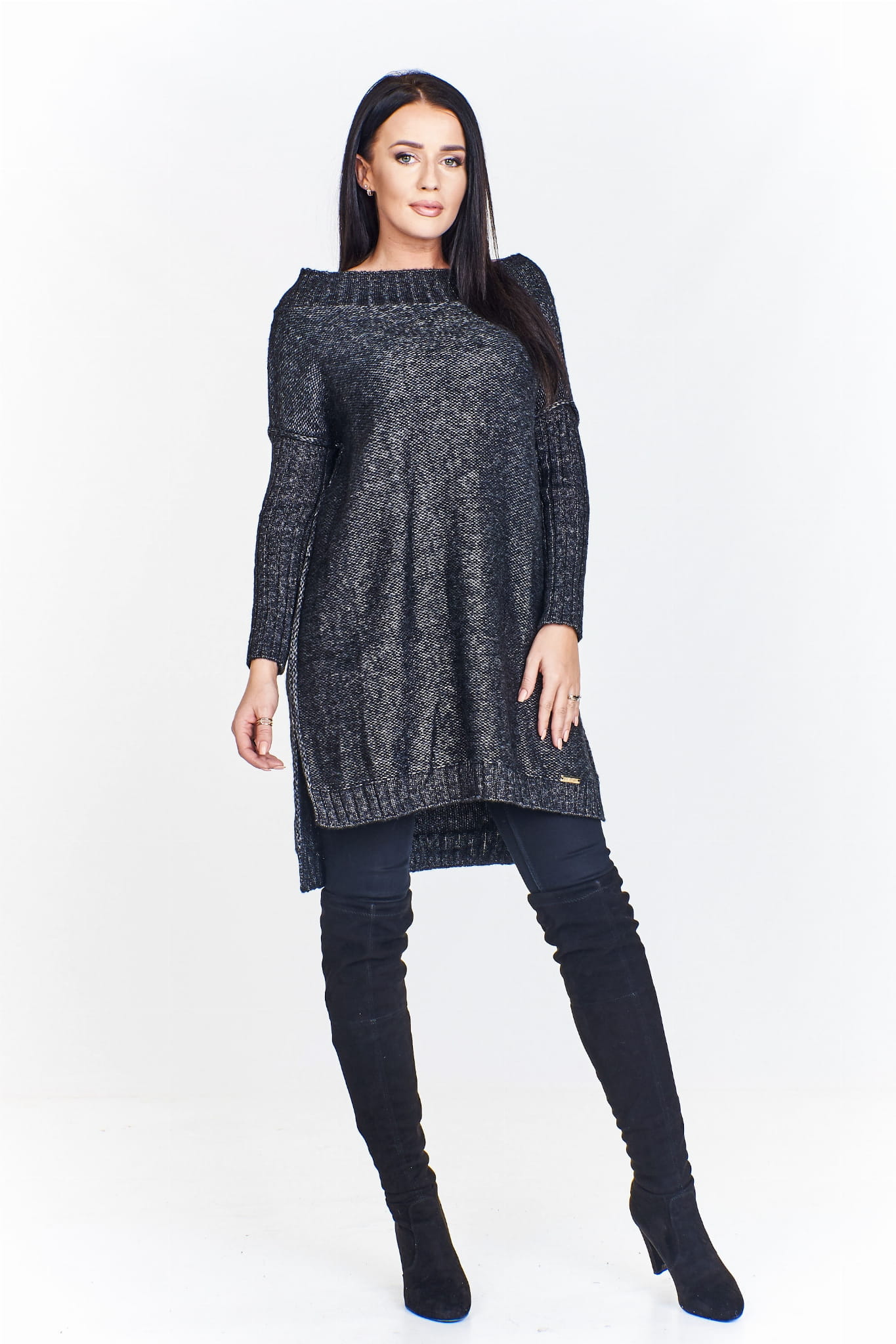 Długi sweter z krótszym przodem i dekoltem wykrojonym w a'la łódkę (U)