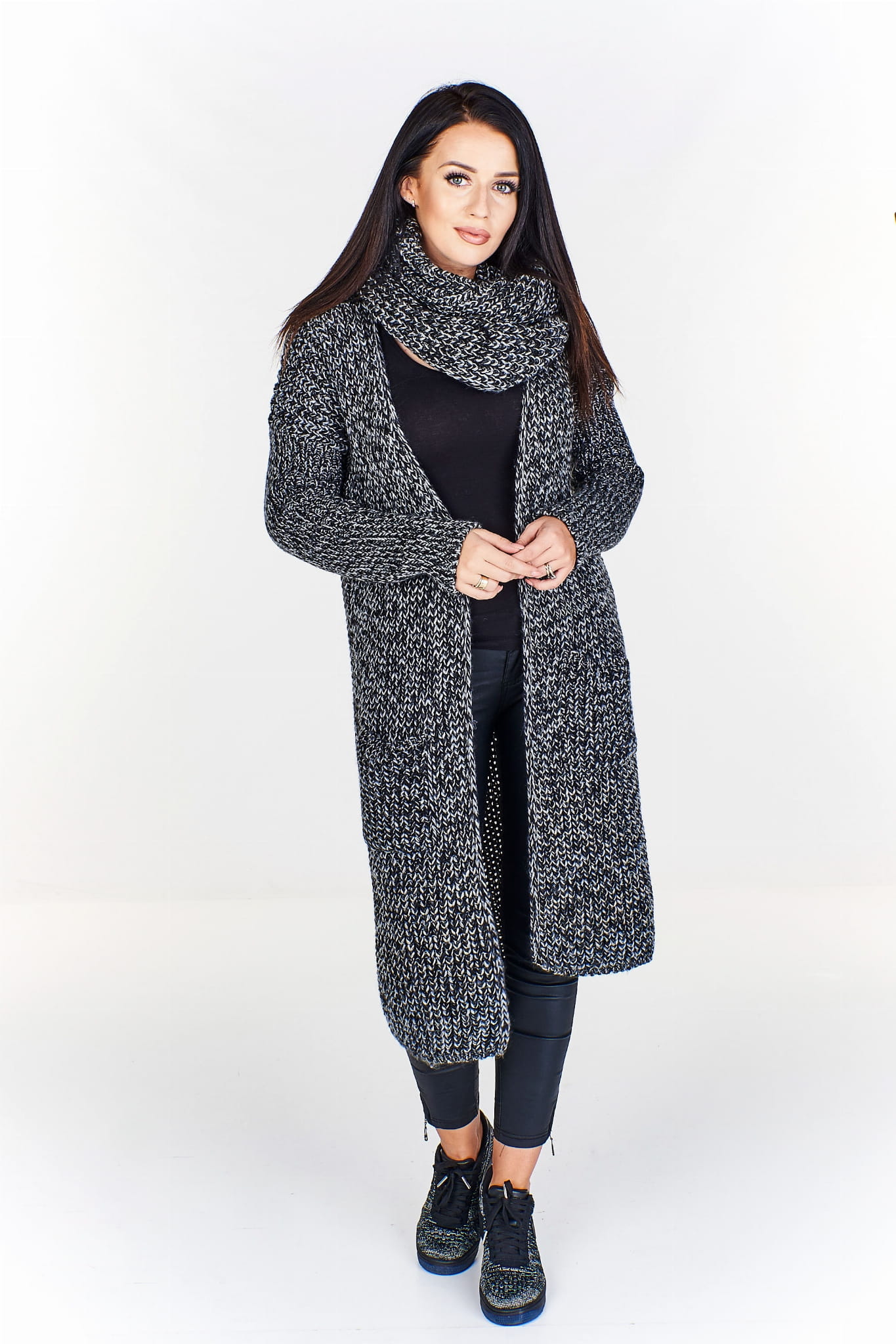 Długi sweter z szalem a'la komin w melanżowym odcieniu (U)