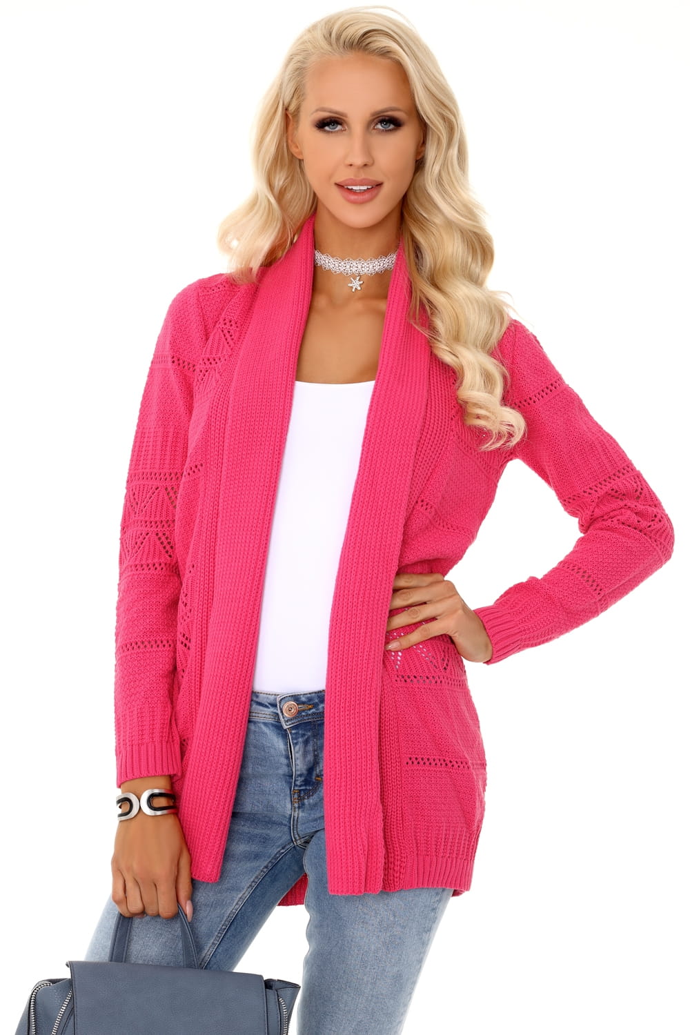 Dłuższy sweter a'la narzutka z dziurkowanym wzorem