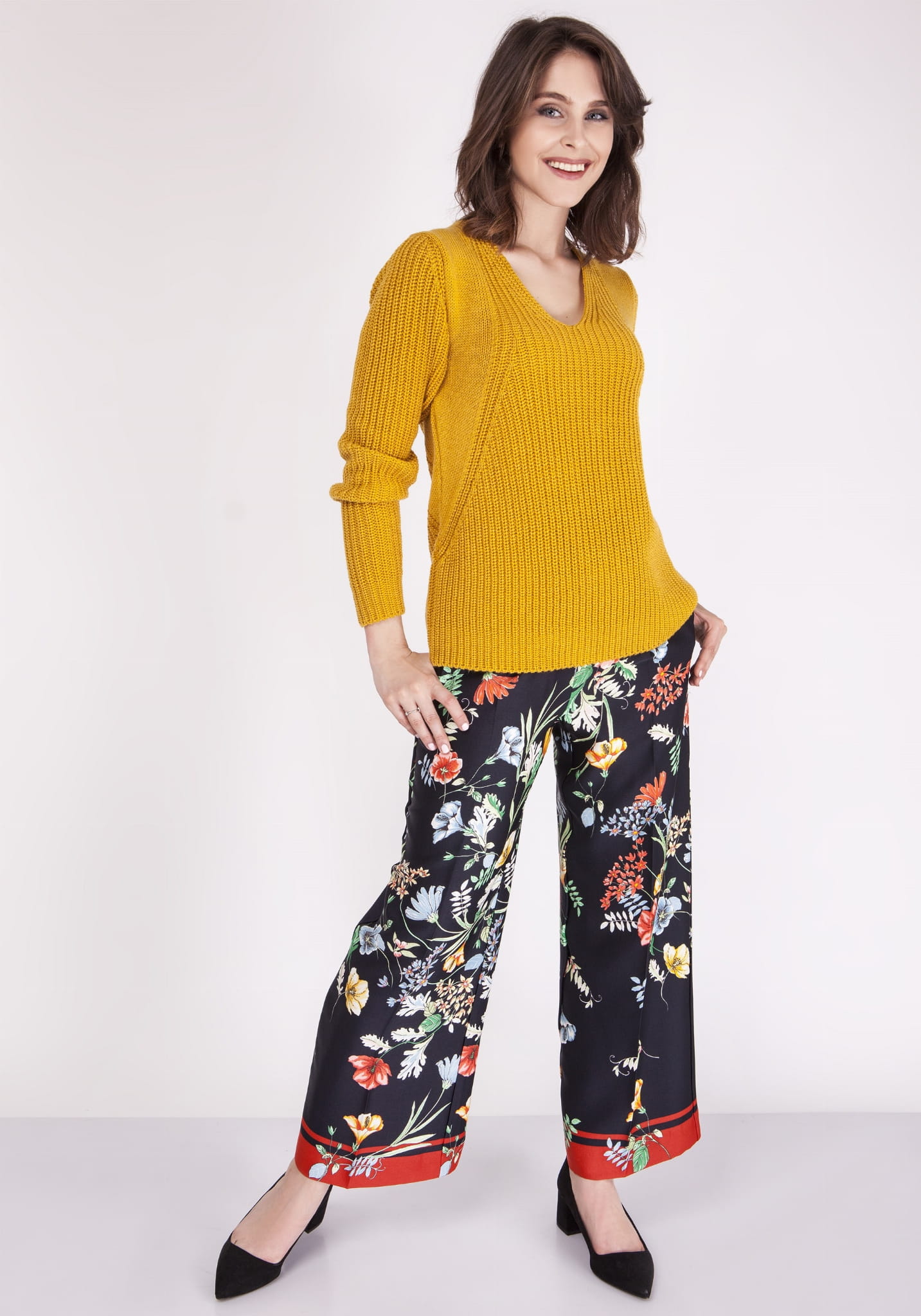 Gładki sweter z dekoltem w serek z prążkowanej tekstury
